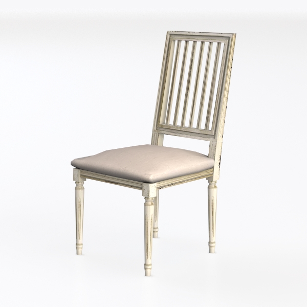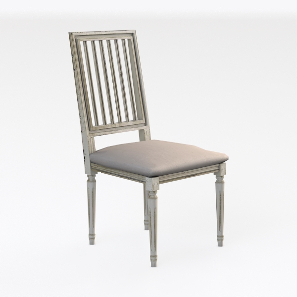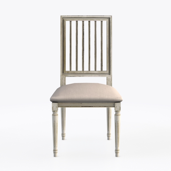 Inspired by classic vintage furniture, this chair blends timeless charm with modern comfort. The weathered wood frame has smooth, refined grain, while the soft beige upholstery offers a warm touch and excellent support. Its vertical back slats add a light, elegant silhouette, perfect for a retro dining room or cozy living space, complementing marble tabletops. The wide seat depth ensures relaxed, all-day comfort.