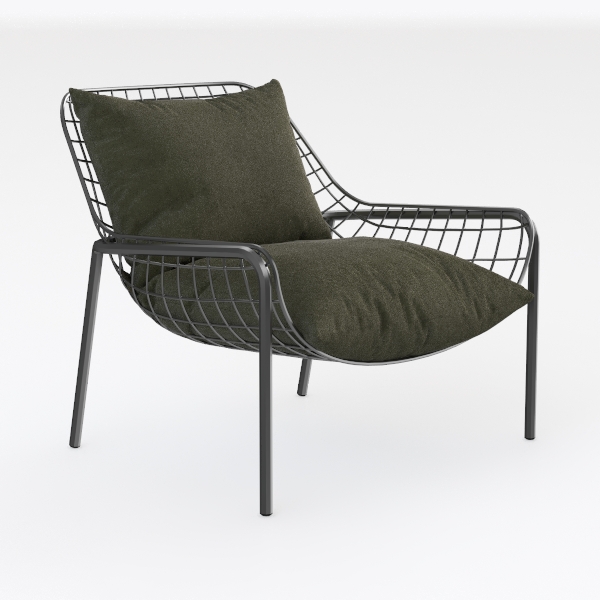 Inspired by mid-century modern design, this armchair merges sleek black metal framework with soft, plush olive-green cushions. The frame’s geometric lines craft a light yet sturdy silhouette, while the cushions’ warm texture adds comfort and visual contrast. Ideal for minimalist living rooms or cozy reading nooks, it pairs with wooden side tables and neutral rugs. A generous seat depth ensures all-day comfort, blending style and practicality.