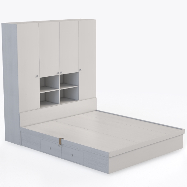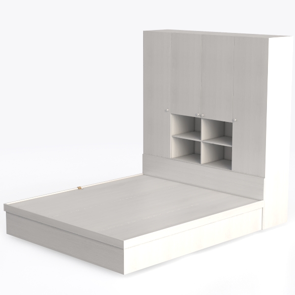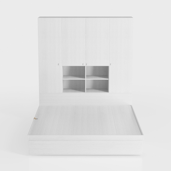 Designed for minimalist living, this piece blends sleek white surfaces with subtle wood grain, offering a clean, airy vibe. Smooth textures and sharp lines create calm, enhancing brightness, ideal for modern bedrooms. Pair with soft lighting and potted greenery, while integrated cabinets and a pull-out drawer maximize storage without clutter.
