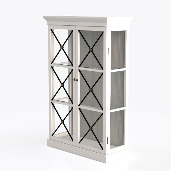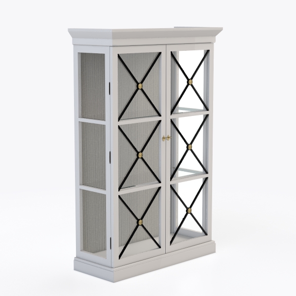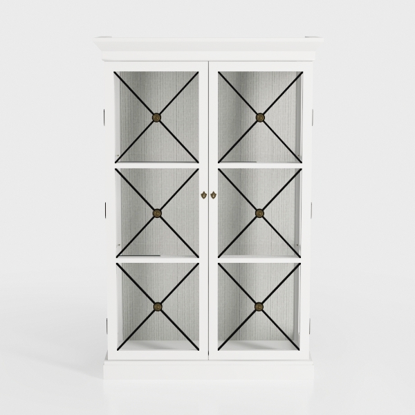 Inspired by mid-century modern minimalism, this white cabinet blends classic charm with contemporary style. Sleek white surfaces and textured glass doors, accented by elegant black geometric frames and gold knobs, create a crisp, refined look. Perfect for a modern living room or dining area, it pairs beautifully with warm wood tones and metallic decor. Spacious interior with adjustable shelves offers ample storage, while transparent doors showcase cherished items.