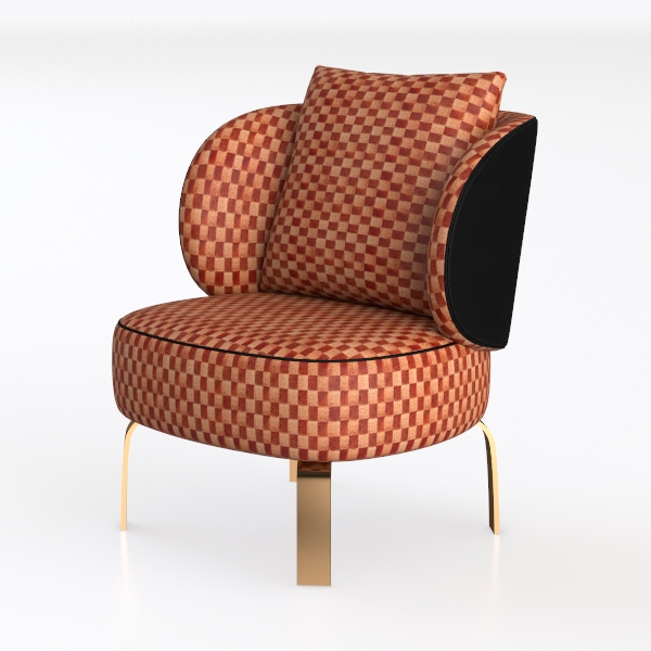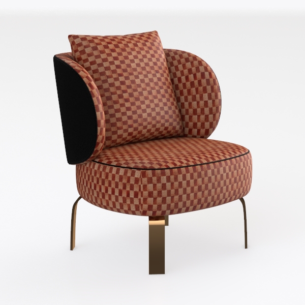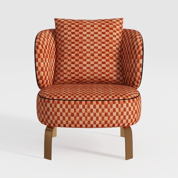 Inspired by the blend of retro checkered patterns and modern design, this armchair features warm orange-red and beige checkerboard upholstery. The soft fabric offers a cozy touch, while smooth lines create a harmonious visual. Perfect for modern minimalist or contemporary living rooms, pair it with wooden coffee tables and metal lamps for a warm vibe. Its wide armrests and backrest provide excellent support, and sturdy metal legs ensure stability, making it ideal for relaxing reading or casual seating.