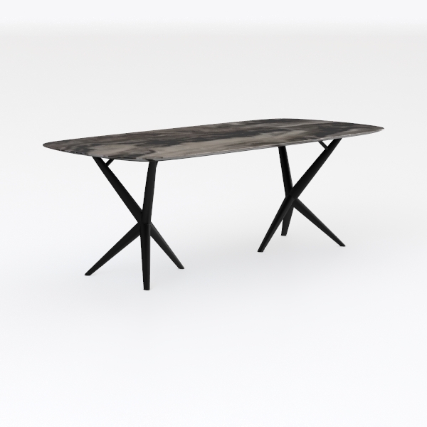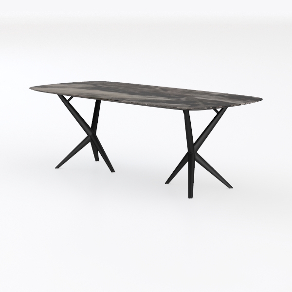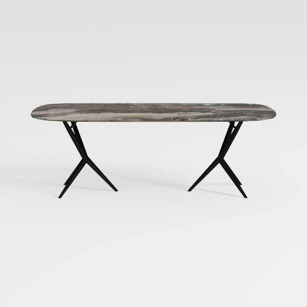 Crafted with inspiration from natural stone’s fluid patterns, this table merges organic elegance with modern minimalism. Its smooth, veined surface radiates cool sophistication, while matte black metal X-legs add sleek structural contrast. Perfect for a contemporary dining room or living room console, it pairs beautifully with marble accents and warm wooden chairs. A spacious top offers ample space, and the stable design ensures lasting style and function.