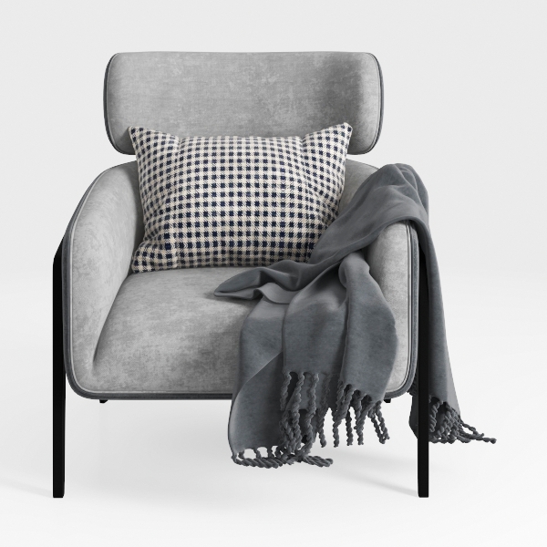 Inspired by modern minimalism, this armchair blends sleek lines with cozy comfort. Its soft gray fabric offers a gentle touch, while the black-and-white checkered pillow and tasseled gray throw add texture and warmth. Perfect for a contemporary living room or study, pair it with wooden coffee tables and metal accents to elevate the space. The wide seat depth ensures optimal support, making it both stylish and practical.