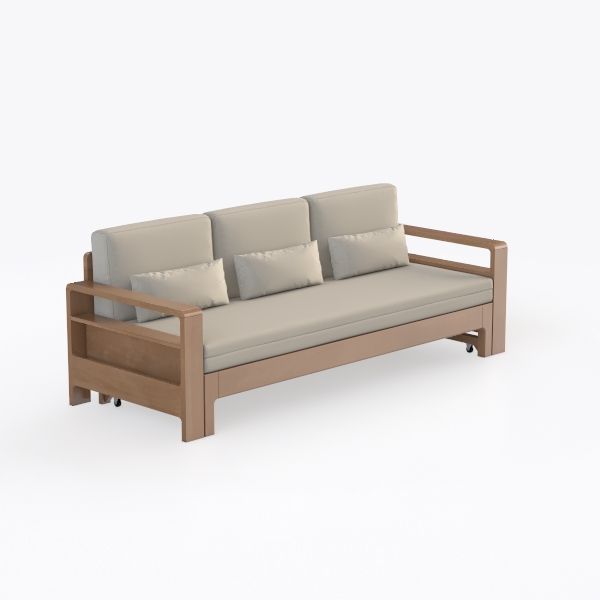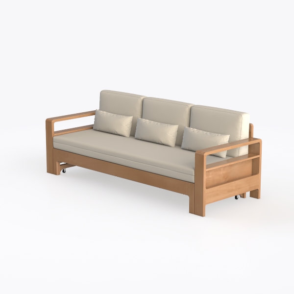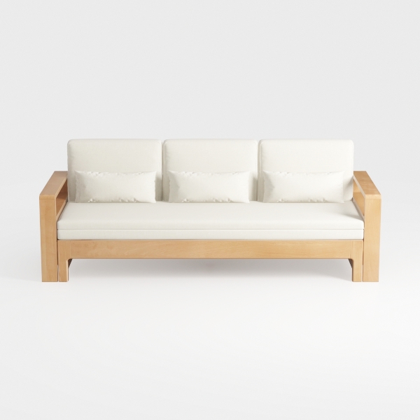 This sofa blends minimalist elegance with organic warmth, taking cues from Scandinavian design philosophy that prioritizes functionality and natural beauty. The soft, off-white upholstery—crafted from a breathable, slightly textured fabric—invites gentle contact, while the smooth, light oak frame, with its subtly sanded edges, offers a warm, tactile contrast. Together, the crisp white cushions and warm wood tones create a serene, light-filled atmosphere, making any room feel open and inviting.