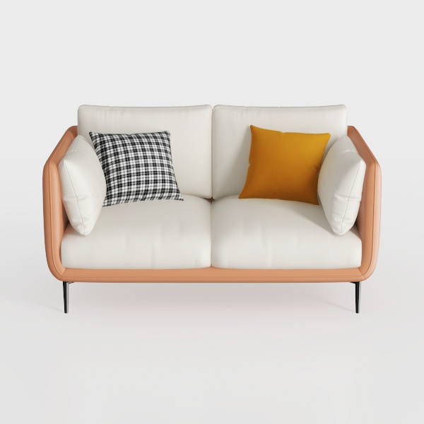 This sofa draws inspiration from the quiet interplay of warm neutrals and vibrant accents, blending minimalist design with a touch of organic warmth. The soft, curved silhouette and balanced color palette evoke a sense of calm yet approachable living, as if crafted to cradle both relaxation and connection.