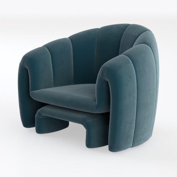 Crafted with organic curves inspired by coastal wave patterns, this armchair merges natural fluidity with modern minimalism, creating a piece that feels both timeless and fresh. The deep teal upholstery, with its soft, velvety texture, invites immediate comfort—running fingers over its surface reveals a gentle, yielding quality, like touching a cloud, while the rich hue exudes calm sophistication, grounding any space it occupies. Visually, its seamless silhouette, with rounded armrests that flow into the curved back and subtly flared legs, eliminates harsh angles, making it a warm, inviting focal point.