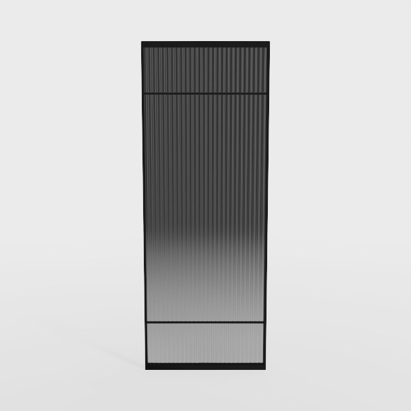 Inspired by clean architectural lines, this tall cabinet features vertical textured panels with a gradient gray finish and sleek black trim. Its matte, translucent surface creates subtle light play, enhancing modern spaces. Perfect for minimalist bedrooms or living rooms, it pairs with neutral decor and metallic accents, offering ample vertical storage in a sophisticated silhouette.