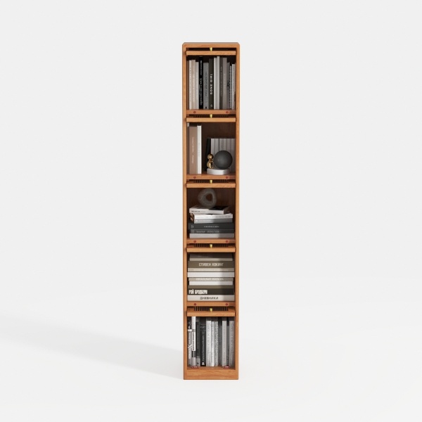 Inspired by minimalist Scandinavian design, this elegant bookshelf features a warm oak finish and smooth, polished surfaces. Clean lines and balanced proportions create a timeless, sophisticated look. Perfect for modern living rooms or home offices, it pairs beautifully with marble coasters and metal bookends, complementing mid-century modern or contemporary decor. Boasts ample storage for books, decor, and small items, sturdy for lasting durability. A versatile, functional solution blending style and practicality seamlessly.