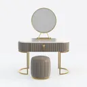 Blending timeless elegance with contemporary minimalism, this vanity piece draws inspiration from the reimagined charm of mid-century modern aesthetics. Its design balances soft, rounded elements—like the circular mirror and curved metal legs—with sleek, clean lines, creating a harmonious blend of vintage warmth and modern simplicity.