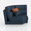 This single-seater sofa merges minimalist sophistication with understated warmth, inspired by the quiet depth of twilight and the geometric precision of modern design. Its deep indigo upholstery, crafted from a textural, high-quality fabric, catches light softly—rich yet not overwhelming—creating a serene focal point in any room. The material feels luxuriously plush to the touch, with subtle paneling along the back and seat that adds depth without clutter, while the gently curved armrests and low-profile silhouette enhance its relaxed, approachable vibe.