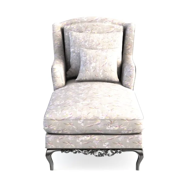 Crafted with vintage charm, this lounge chair features soft floral-patterned upholstery and intricate carved legs. The textured fabric, in delicate pastels, offers a tactile blend of plushness and elegance, creating a warm, inviting vibe. Perfect for a classic living room or cozy bedroom, it pairs beautifully with wooden side tables and vintage-style lighting. Generous seat depth and curved backrest ensure exceptional comfort, ideal for unwinding in style.