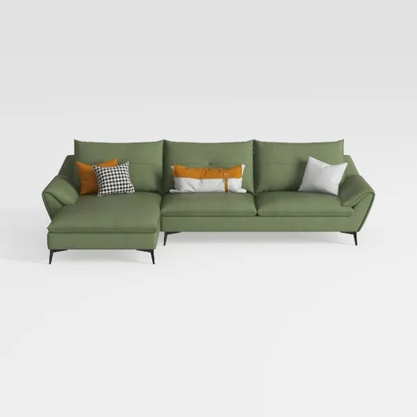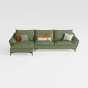 Blending organic warmth with geometric precision, this L-shaped sofa embodies a harmonious fusion of natural inspiration and modern minimalism. Its design draws from the quiet elegance of botanical aesthetics—think the soft, earthy tone of a mossy forest floor—paired with the clean, uncluttered lines of contemporary interior design, creating a piece that feels both timeless and fresh.