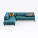 This L-shaped sofa takes cues from coastal tranquility and modern minimalism, merging soft, organic energy with sleek, streamlined elegance. Its textured upholstery in a warm teal hue feels surprisingly plush yet breathable, inviting you to sink into its generous seating depth—ideal for unwinding with a film or hosting small gatherings. The frame’s clean lines and gentle curves, balanced by slim, tapered blue legs, keep the design light and open, making it a perfect fit for spaces that crave both style and airiness.