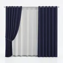 This modern double curtain set features rich navy blue fabric layered over sheer white panels, presenting 37108 polygons for detailed interior scenes.