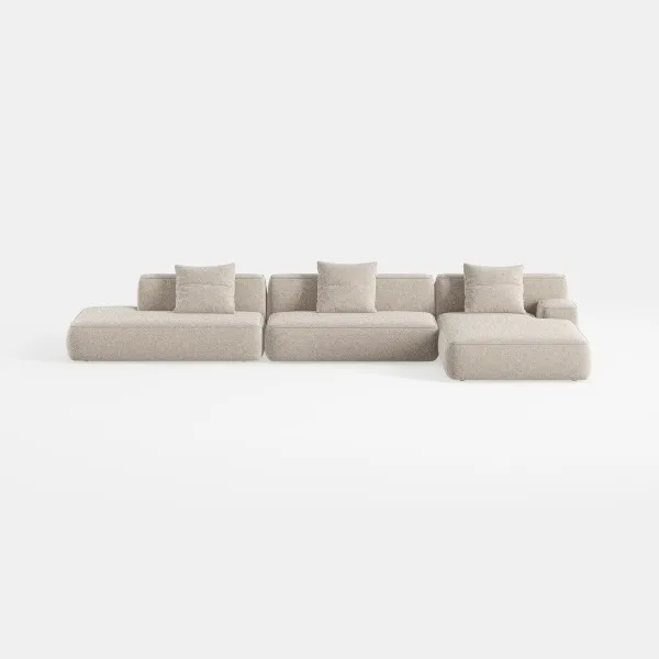This sofa merges modern simplicity with everyday comfort, rooted in the desire to create a "soft sanctuary" for urban living. Its design draws inspiration from organic forms, with rounded, interconnected sections that flow seamlessly, avoiding rigid lines to evoke a sense of calm and togetherness.