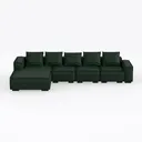 Blending organic warmth with geometric precision, this L-shaped sofa embodies a harmonious fusion of natural inspiration and modern minimalism. Its design draws from the quiet elegance of botanical aesthetics—think the soft, earthy tone of a mossy forest floor—paired with the clean, uncluttered lines of contemporary interior design, creating a piece that feels both timeless and fresh.