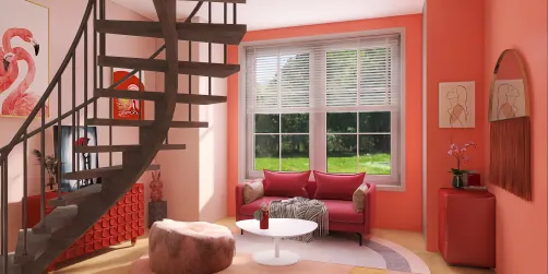 Living Room in Cream, Beige, and Deep Magenta Ton