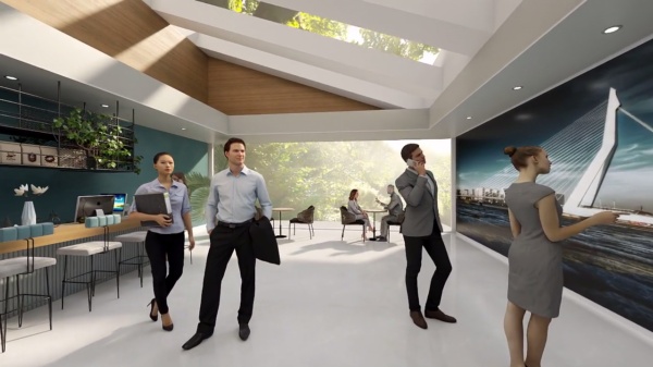 Office building, canteen, animation