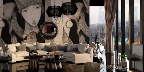 Living Room in Cream, Beige, and Deep Magenta Ton