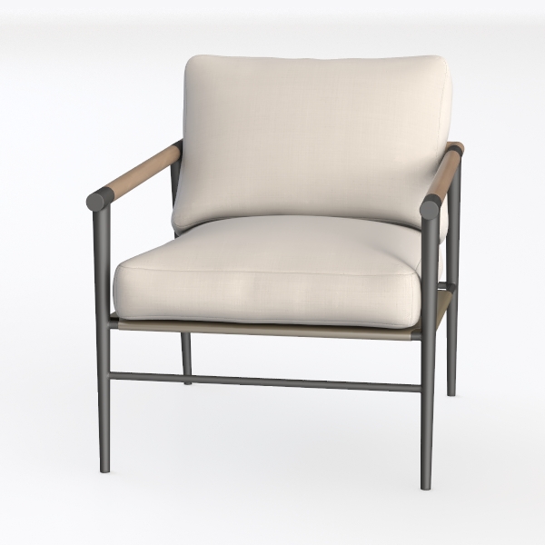 Inspired by the balance of natural warmth and geometric simplicity, this armchair merges organic textures with clean, contemporary lines. The generously padded seat, upholstered in a soft, off-white fabric, offers a cloud-like softness that invites relaxation, while the gently curved backrest provides subtle lumbar support, ensuring comfort even during extended sitting.