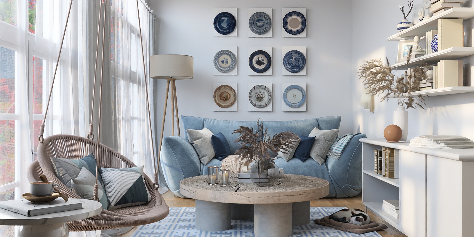 Inspired by the gentle curves of nature and the comfort of home, this exquisite sofa encapsulates a modern yet cozy aesthetic. Upholstered in a soft, textured fabric, it invites you to sink in and unwind, offering a tactile experience that is both luxurious and approachable. The subtle blue hue adds a calming touch, making it an ideal centerpiece for a serene living space.