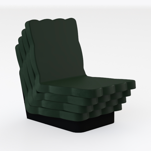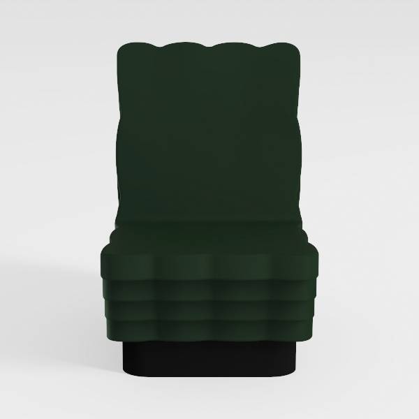 Introducing a striking addition to contemporary interiors, this chair showcases a unique blend of modern aesthetics and functional design. Inspired by organic forms, its flowing lines and scalloped edges create a soft silhouette that stands out in any space. The deep green upholstery not only adds a touch of sophistication but also invites a sense of tranquility, making it a perfect centerpiece for a cozy reading nook or an artistic living room.