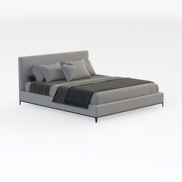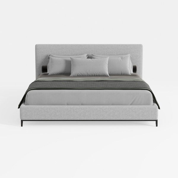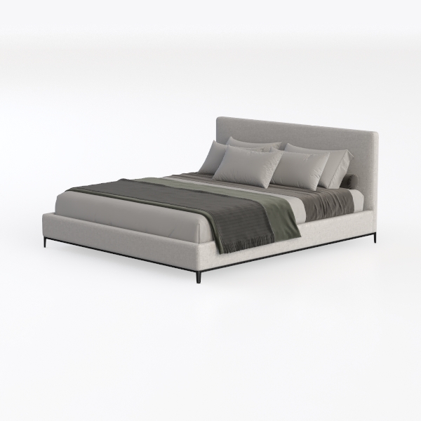 Crafted with a focus on understated elegance, the design draws inspiration from the quiet harmony of natural materials and minimalist architecture, aiming to create a space that feels both grounding and expansive. The upholstery features a soft, textured linen blend in a warm taupe-gray hue, its surface inviting gentle touches with a blend of plush softness and subtle structure—like running fingers through a well-loved blanket. The headboard, a continuous, slightly curved form, rises from the frame with a sense of lightness, its edges softened to cradle the body, while the low-profile footboard and slim, matte black legs keep the overall silhouette uncluttered and modern.