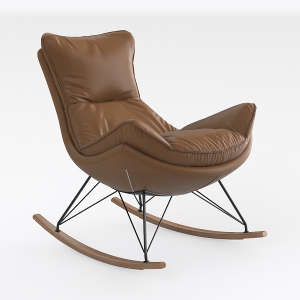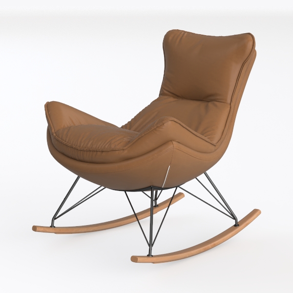 The design of this rocking chair draws inspiration from mid-century modern aesthetics, blending comfort with elegance. Its rich, tan leather upholstery exudes a warm, inviting feel, while the smooth curves of the seat create a sense of coziness. The chair's tactile surface invites you to sink in and unwind, enhancing your relaxation experience.