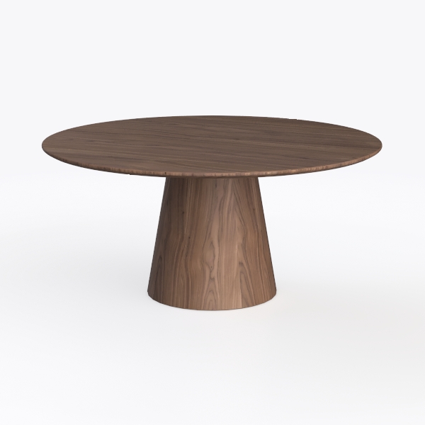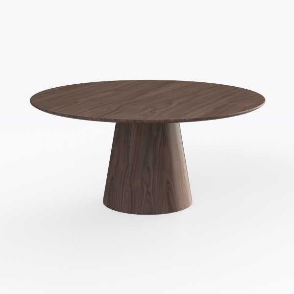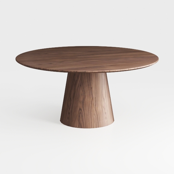 Ideal for modern, Scandinavian, or mid-century-inspired interiors, it shines as a centerpiece in a dining room paired with upholstered dining chairs in muted tones and a statement chandelier, or in a living area when styled with a plush rug, floor cushions, and a low-profile sofa. The spacious circular tabletop offers generous room for family meals, game nights, or coffee with friends, while the sturdy, conical base provides stable support and a balanced visual weight, ensuring it complements both formal and casual settings seamlessly.