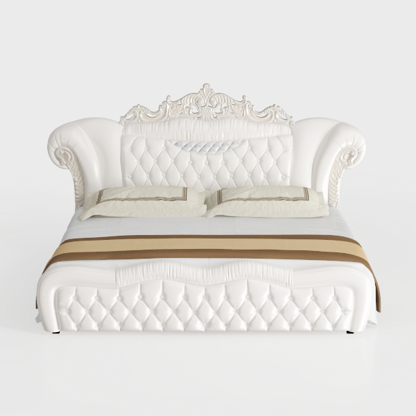 Inspired by the timeless allure of 18th-century European classical design, this piece merges historical grandeur with modern comfort. The headboard, a masterpiece of craftsmanship, features intricate scrolling carvings and a diamond-quilted pattern, creating a focal point that balances opulence and softness. Crafted from smooth, high-quality upholstery, the surface feels luxuriously supple to the touch, while the crisp white hue reflects light gently, infusing the space with an airy, sophisticated glow. The curved armrests and footboard add a flowing, elegant silhouette, harmonizing with the structured quilting to form a visually cohesive, inviting piece.