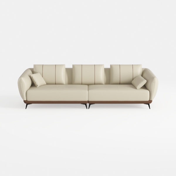 Introducing a stunning sofa that seamlessly blends comfort with contemporary design. Inspired by minimalist aesthetics, this piece emphasizes clean lines and a soft, inviting silhouette. The luxurious, cream-colored upholstery creates a warm and inviting atmosphere, while the subtle detailing offers a touch of sophistication.