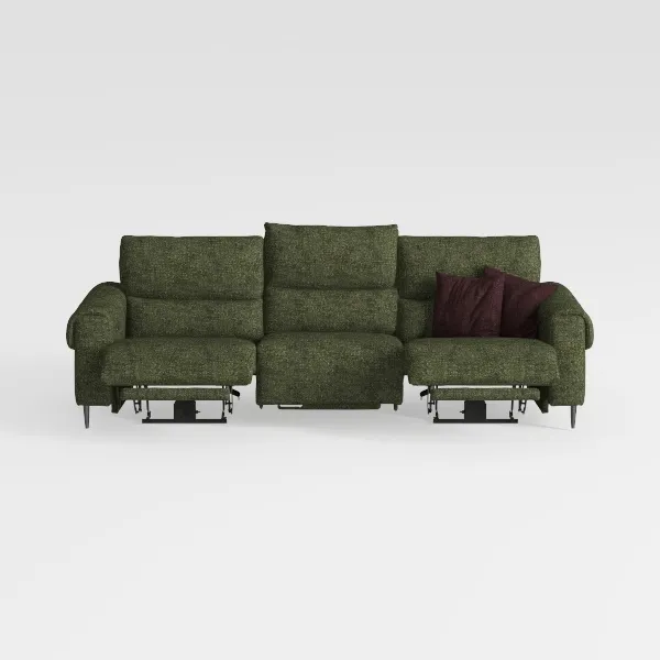 Perfect for modern, minimalist, or Scandi-style living spaces, it shines when paired with warm wooden furniture, such as a smooth oak coffee table or a textured wool rug, and accented with muted terracotta or brass accessories to enhance its natural warmth. The sofa’s design prioritizes versatility: the generously deep seats cradle you in comfort, while the integrated power recline mechanism allows each end to extend smoothly, transforming it from a casual seating spot into a cozy lounger for unwinding or entertaining. Sturdy, slender metal legs elevate the piece, keeping it light and unobtrusive while ensuring stability.