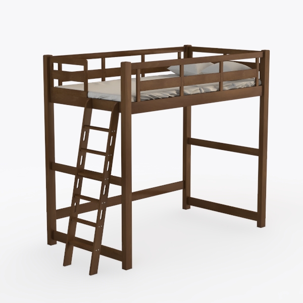 Beneath the elevated sleeping area lies a generous, open space ideal for studying, playing, or storing extra items, making it a smart choice for those seeking to make the most of limited square footage. The sloped ladder ensures easy, safe access to the upper bunk, while the solid construction guarantees durability for daily use, ensuring it grows with its user.
