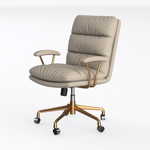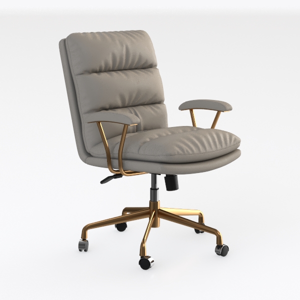 Beyond its aesthetic appeal, the chair prioritizes comfort and practicality. The generously deep seat and contoured backrest offer exceptional lumbar support, reducing strain during extended workdays. Smooth-rolling casters allow easy mobility across various floor types, while the height-adjustable mechanism ensures a personalized fit for different desk heights. Sturdy yet lightweight, the golden metal base provides stability, making it both a reliable companion for productivity and a design focal point.