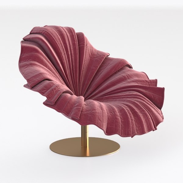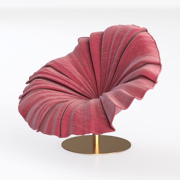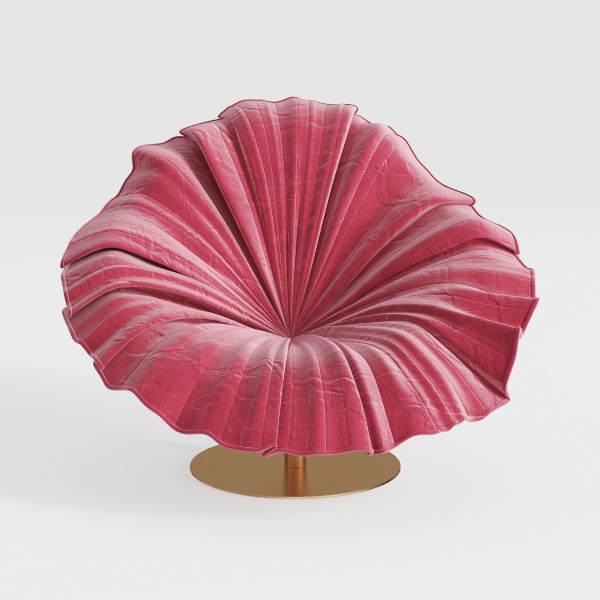 Inspired by the organic grace of a fully unfurled blossom, this armchair marries natural beauty with contemporary design. Its sumptuous, richly saturated pink hue—crafted from ultra-soft velvet—shimmers subtly, casting a warm, inviting glow that transforms any space. The upholstery, with its intricate, fan-like folds radiating from a central core, forms a sculptural silhouette, blending dynamic movement with serene balance, as if frozen mid-bloom.