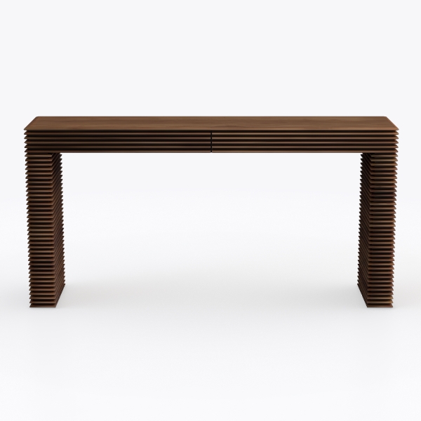 Ideal for modern, Scandinavian, or轻奢-inspired spaces, it shines as a console table in a living room or entryway. Pair it with a neutral-toned sofa and a jute rug for a cozy, understated look, or with marble accessories and metallic lamp bases to add subtle luxury. The design’s slim silhouette ensures it fits seamlessly into narrow corners, while its sturdy, stacked leg structure provides unwavering stability. A discreet, integrated drawer in the tabletop offers hidden storage for small essentials, balancing practicality with the piece’s elegant, clutter-free aesthetic. Every element—from its tactile texture to its functional details—blends to create a timeless, versatile piece that elevates any interior.
