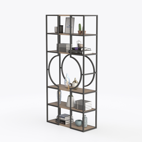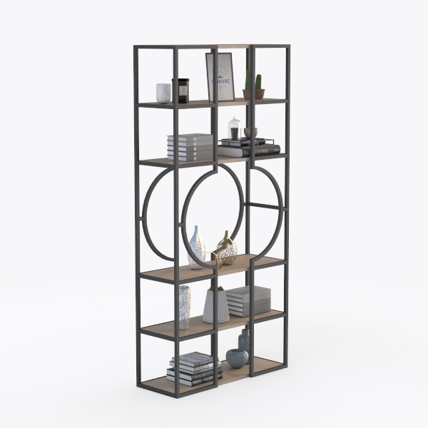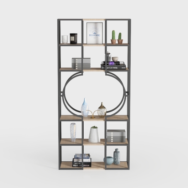 A standout detail is the central circular cutout, which softens the rigid framework, allowing light to filter through and infusing the piece with an airy, open feel. This design choice also creates visual interest, breaking up the monotony of vertical lines and making the unit feel less bulky, even in smaller spaces.