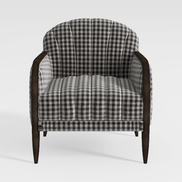 Introducing a striking armchair that effortlessly merges classic charm with modern elegance. Inspired by traditional upholstery techniques and timeless patterns, this piece features a bold houndstooth fabric that adds depth and character to any space. The soft texture invites you to sink into its embrace, while the sturdy wooden frame ensures stability and durability.