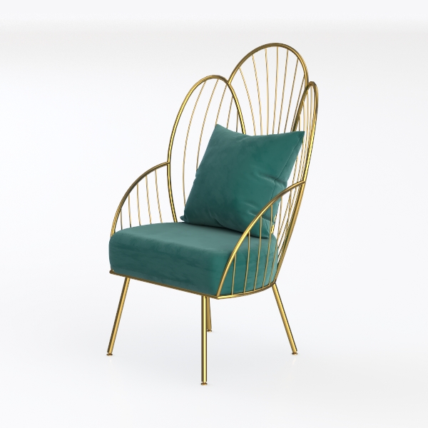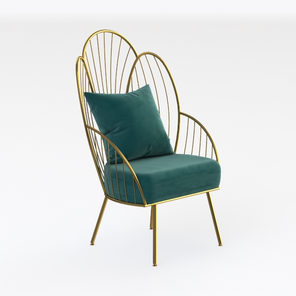 Introducing a stunning seating solution that effortlessly combines elegance and comfort. Inspired by modern minimalist design, this piece features a striking golden frame that showcases graceful, arching lines, creating an airy, open feel. The soft teal cushion provides not only a pop of color but also enhances the overall aesthetic with its luxurious texture, inviting relaxation.
