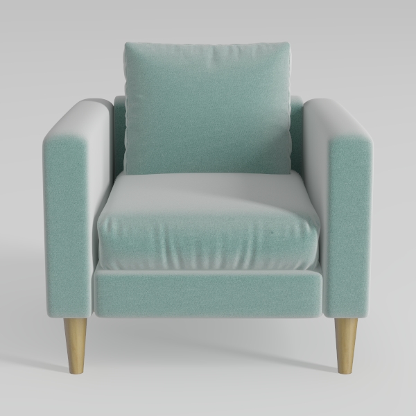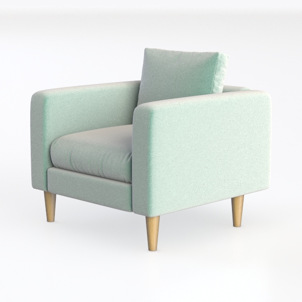 Inspired by contemporary Scandinavian design, this armchair presents a refreshing blend of minimalist elegance and cozy comfort. Its soft, muted aqua fabric invites you to sink in, offering a plush seating experience that feels as good as it looks. The contrasting white armrests provide a sleek touch, while the light wooden legs elevate the overall aesthetic, making it a statement piece in any room.