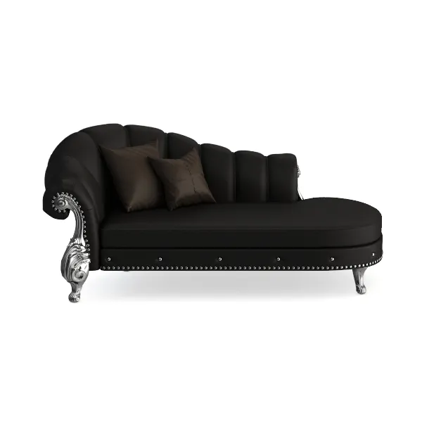 Drawing inspiration from classic elegance, this exquisite chaise lounge features a bold black upholstery that exudes a sense of sophistication and luxury. Its curves invite relaxation, while the plush seating offers a comforting embrace, making it an ideal spot for unwinding after a long day.