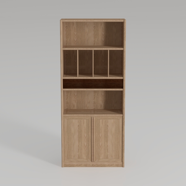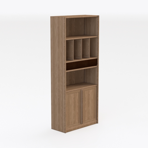 The design of this bookshelf takes cues from the harmonious blend of natural minimalism and practical living, prioritizing both visual appeal and functional utility. Crafted with warm, earthy wood tones, its surface features soft, natural grain patterns that add subtle depth, while the smooth, slightly textured finish feels gently cool to the touch—evoking a connection to organic materials without heaviness. The silhouette is defined by clean, uncluttered lines: a tall, vertical frame is divided into three sections, with the top two open compartments allowing light to filter through, the middle shelf in a richer, darker wood tone serving as a striking focal point for displaying cherished books or decor, and the bottom closed cabinet offering secret storage for everyday essentials.