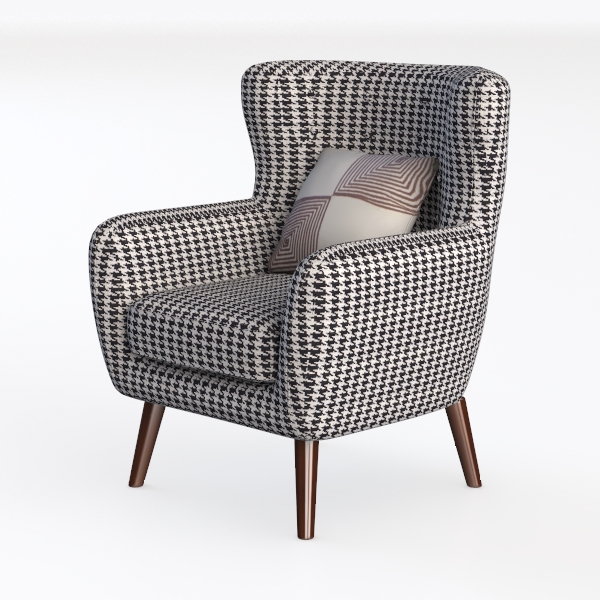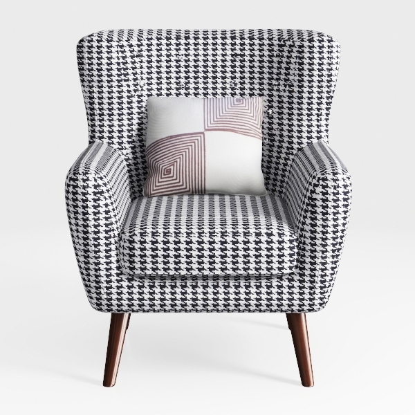 Embrace a touch of elegance with this stunning armchair, inspired by mid-century modern design. The striking black-and-white houndstooth pattern adds a bold visual statement, drawing the eye and enhancing any room's aesthetic. Its textured fabric invites you to sink in and enjoy its cozy comfort, while the wide armrests and plush backrest provide ample support, ensuring relaxation.