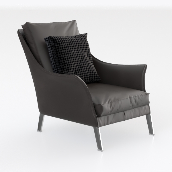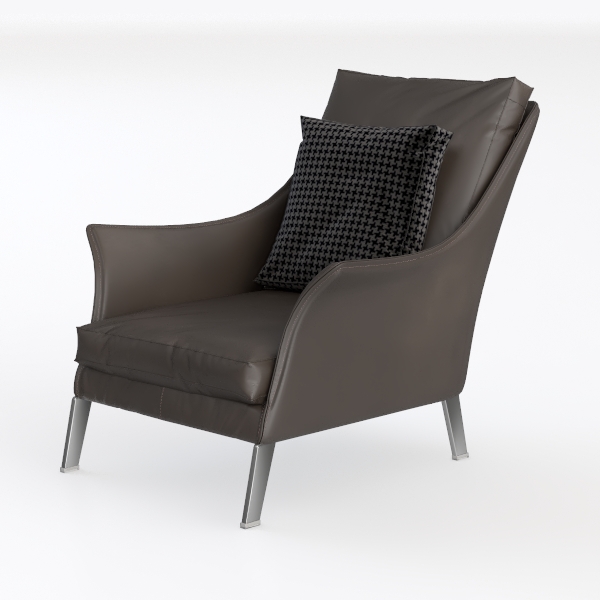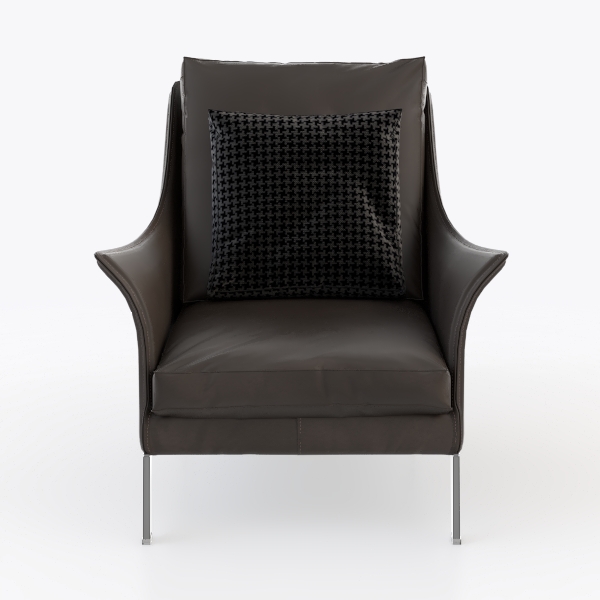 This elegant armchair draws inspiration from the fusion of architectural minimalism and ergonomic precision, balancing clean lines with a focus on everyday comfort. Crafted with premium leather upholstery, its surface feels smooth yet slightly matte to the touch—cool and inviting, with a subtle sheen that catches light softly. The silhouette is defined by gently curved armrests that flow seamlessly into the high, enveloping backrest, creating a sense of gentle embrace. A textured houndstooth-patterned pillow rests on the seat, adding depth and visual interest without overwhelming the chair’s understated charm.