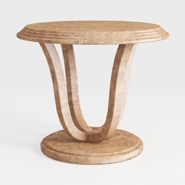 Crafted with inspiration from organic architectural curves, this side table marries timeless elegance with modern simplicity. Its warm, honeyed wooden surface, rich with natural grain patterns, catches light softly, revealing a smooth yet inviting texture that feels both durable and tactile. The curved, interlocking base—rising from a stable, circular pedestal to support a gently rounded tabletop—creates a fluid, balanced silhouette, making it a focal point that complements rather than overwhelms.