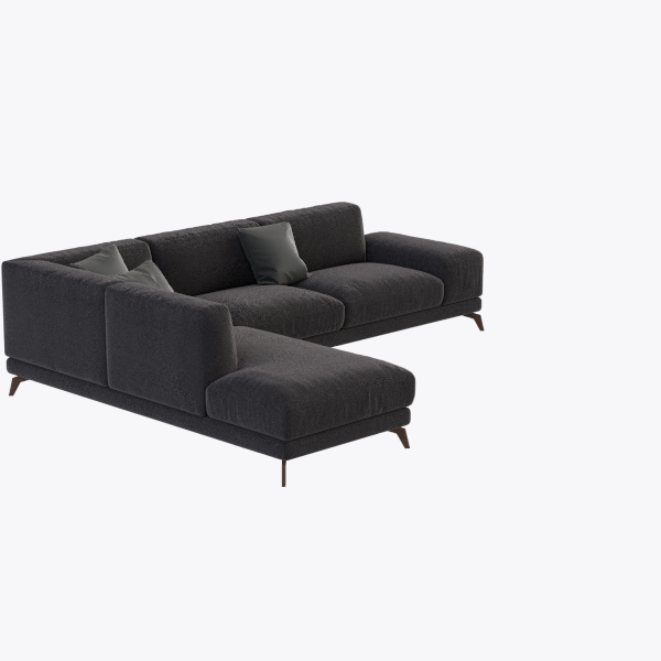 Inspired by contemporary minimalism, this exquisite sectional sofa boasts a clean, sophisticated silhouette that seamlessly blends into modern interiors. The rich, dark fabric texture not only enhances the visual appeal but also offers a warm, inviting touch, making it perfect for relaxing evenings or lively social gatherings.