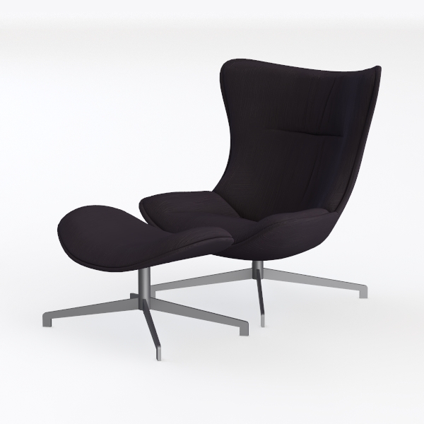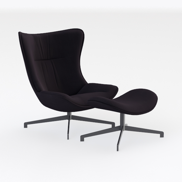 Crafted to blend comfort and modern elegance, this armchair takes cues from the harmonious balance of organic curves and structured simplicity, echoing mid-century design principles reimagined for today. Its silhouette is defined by a gently flared backrest that mimics the soft arc of a seashell, while the wide, shallow seat appears to cradle the body, inviting both relaxation and casual interaction. The upholstery, a rich, textured fabric in deep charcoal, feels surprisingly plush to the touch—light yet supportive, with a subtle sheen that catches ambient light, casting delicate shadows across its surface. Contrasting this warmth, the matte black metal base, with its five-point star design and angled legs, adds a grounded, industrial-inspired stability, creating a striking visual dialogue between softness and structure.