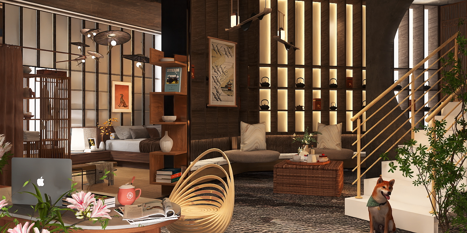Designed to blend functionality with modern living, this piece draws inspiration from the need for multi-purpose spaces in compact homes, seamlessly merging a workspace with a casual gathering area. Crafted with rich, warm-toned wood, its surface features smooth, visible grain that adds a tactile depth, while the contrasting light gray countertop—with a subtle, polished finish—creates a striking visual balance, softening the organic warmth of the wood with a touch of modern cool.
