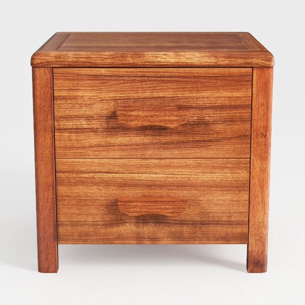 Beneath its streamlined top lie two generously sized drawers, designed to tuck away bedtime essentials: a stack of novels, a phone charger, or a half-read journal. Sturdy, slightly tapered legs provide steady support, while the subtle, curved wooden pulls add a touch of softness to the angular frame, making every opening and closing feel intentional and smooth. Together, these elements create a piece that’s as functional as it is visually grounding—truly a staple for thoughtful, intentional living.
