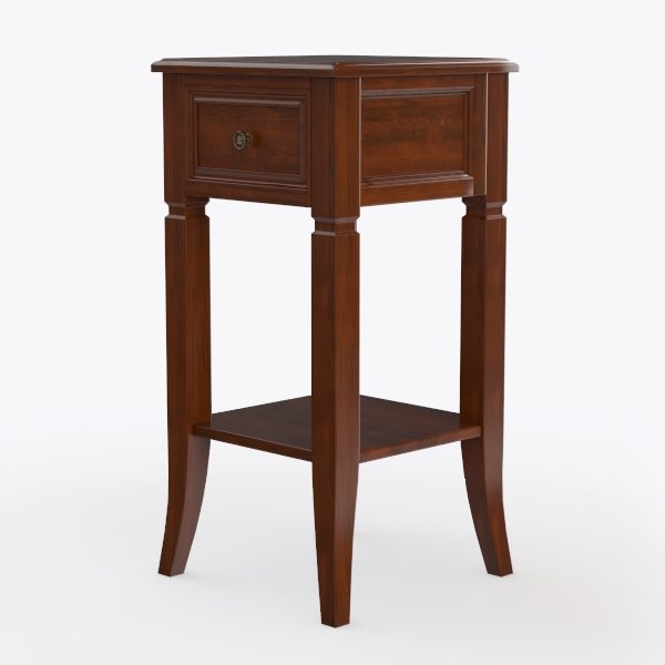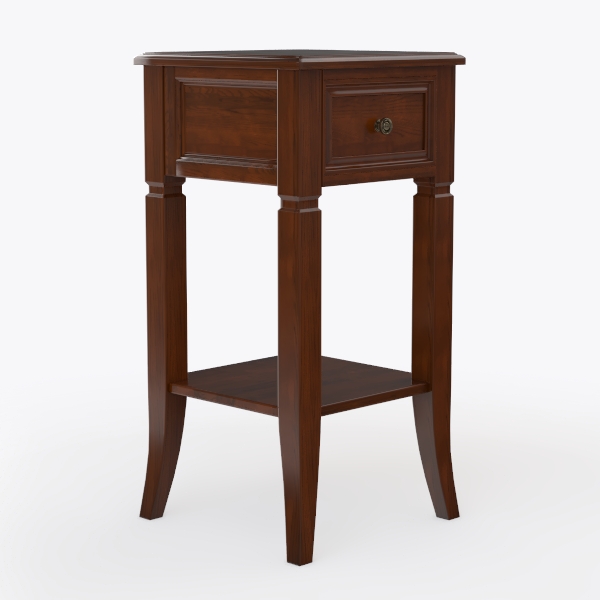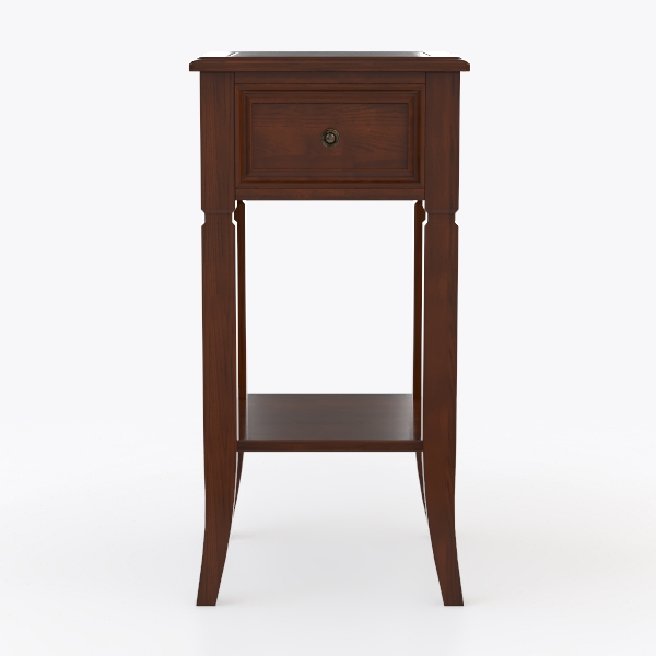 Beneath its sleek top lies a single drawer, perfect for stashing bedtime essentials like reading glasses or a small journal, while the open lower shelf offers a convenient spot for a potted succulent or a stack of coffee table books. Slender, angled legs ensure stability without bulk, making it a versatile, space-efficient piece that blends functionality with timeless style.